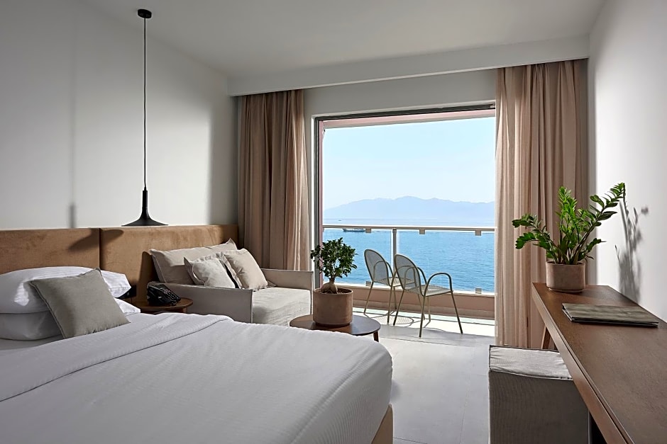 Featuring a spacious furnished balcony or with panoramic views over the sea and the infinity pool, this air-conditioned room is right above the infinity pool and comes with a TV with cable and satellite channels, safe, coffee/tea facilities, bathrobes, slippers and a hairdryer. The bathroom is stocked with a shower. Free WiFi is available.